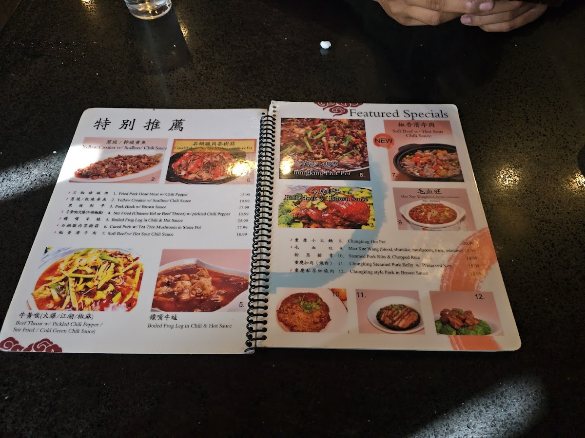 Upon entering, you are greeted by a classic Chinese restaurant charm that instantly sets the stage for a memorable dining experience. The welcoming staff exude warmth and efficiency, adding to the inviting atmosphere. The massive menu, containing over 200 items, is a testament to the restaurant's dedication to variety and quality. Each dish is a carefully crafted representation of traditional Chongqing flavors, designed to tantalize your taste buds.